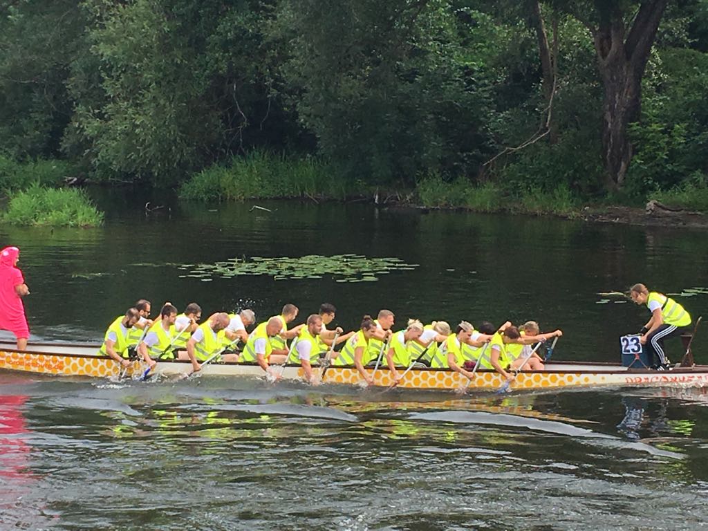 Beim diesjährigen, mittlerweile 22. Oranienburger Drachenbootrennen am vergangenen Samstag war auch wieder ein Team des Vereins Contra Eierfabrik Oranienburg mit am Start. Es galt, den 18. Platz vom vergangenen Jahr in der Kategorie „Mixed“ zu verteidigen. Mit viel sportlichem Ehrgeiz, fleißigem Training und einer ordentlichen Portion Kampfgeist hat sich das Team der „Contras“ bis auf den 12. Platz – von insgesamt 34 teilnehmenden Teams – gepaddelt und somit auch auf dem Wasser bewiesen, dass man nur gemeinsam im Takt, Schlag für Schlag ins Ziel kommt. Alle Mitwirkenden hatten großen Spaß und sind im nächsten Jahr wieder mit dabei.