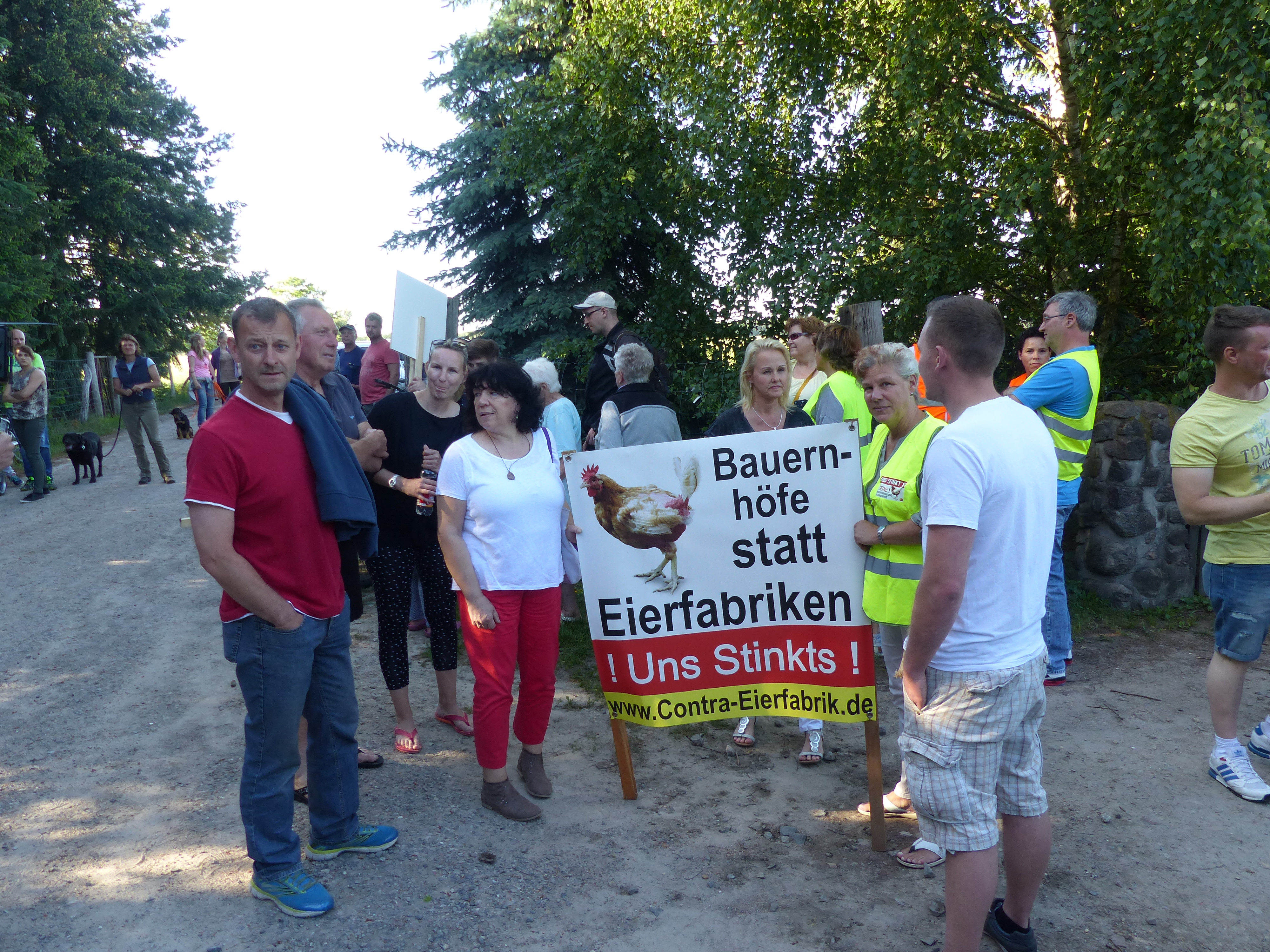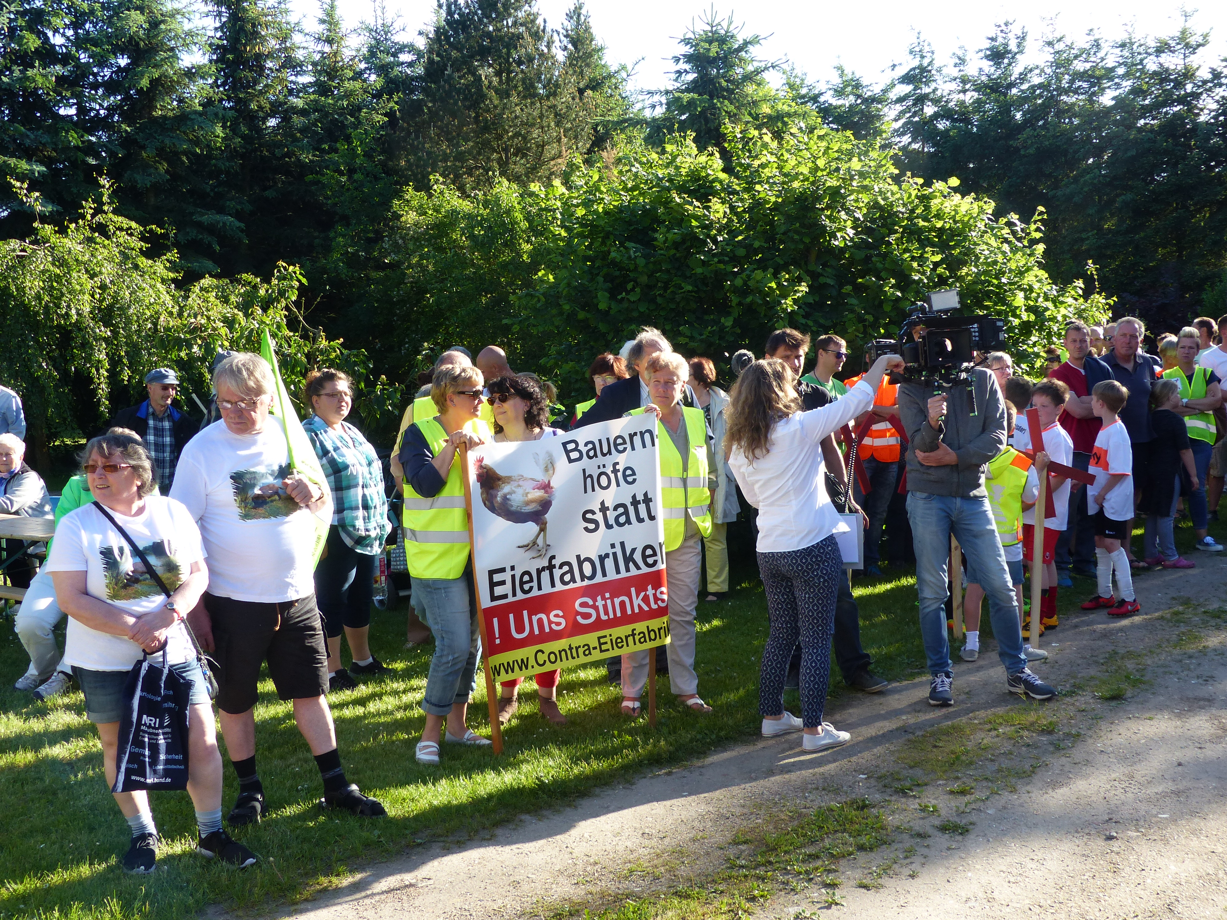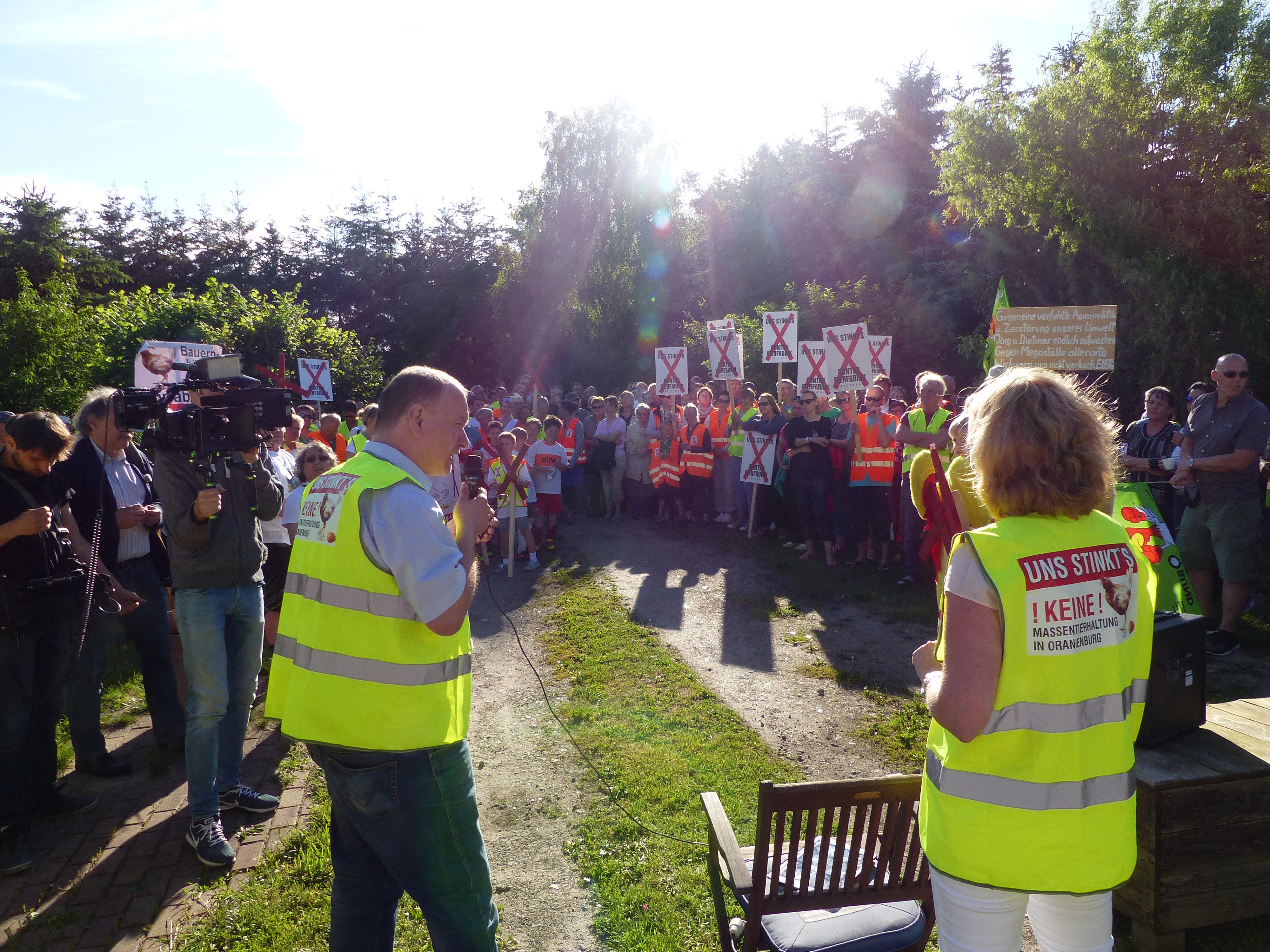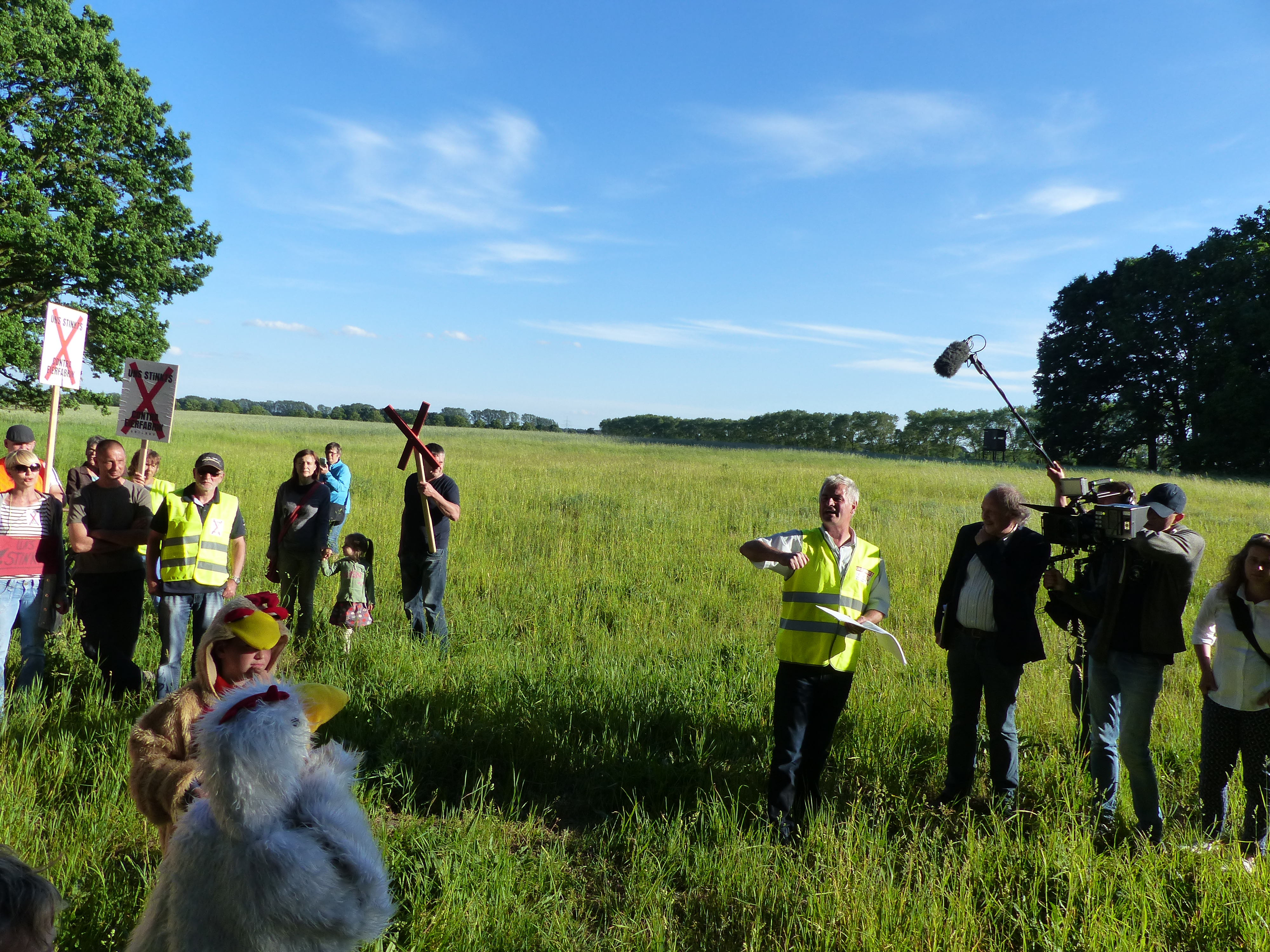 | Ben Becker gibt BenefizlesungVeröffentlicht am 06.06.2017 Der Schauspieler und Sänger Ben Becker gibt am 2. Juli um 18 Uhr unter dem Titel "Gedichte und Geschichten" eine Benefizlesung in der Orangerie des Schlosses Oranienburg. Er unterstützt damit die Arbeit der Bürgerinitiative "Contra Eierfabrik", die seit einem Jahr gegen die Errichtung von Legehennenanlagen in Wensickendorf und Zehlendorf kämpft. Die Einnahmen sollen der Arbeit der Bürgerinitiative zugute kommen. Karten sind für 25 Euro bei allen Vorverkaufsstellen in Oranienburg und im Onlineportal reservix.de erhältlich 300 Menschen beteiligen sich an KundgebungVeröffentlicht am 01.06.2017 Knapp 300 Menschen beteiligten sich am gestrigen frühen Abend in Zehlendorf an einer Demonstration gegen die Eierfabrik-Pläne von Investor Josef Vortallen. Die Kundgebung wurde innerhalb weniger Tage auf die Beine gestellt. Ein Anlass dafür war, dass die BI erneut ein Zeichen setzen wollte. Denn auch nachdem die Stadtverordneten Oranienburgs beschlossen haben, über einen Bebauungsplan die Ansiedlung von Tierhaltungsanlagen im gesamten Stadtgebiet zu steuern, bleibt Widerstand gegen derlei Pläne wichtig.Zum einen, weil das Genehmigungsverfahren für die Anlage in Zehlendorf bereits beim Landesumweltamt läuft. Hier ist in den nächsten Wochen mit der Veröffentlichung der Antragsunterlagen zu rechnen. Ab Veröffentlichungstermin haben Einwohner sechs Wochen Zeit, ihre persönlichen Einwendungen an das Landesumweltamt zu schicken. Einwendungen, die davor oder danach eingehen, werden vom Amt nicht berücksichtigt. Außerdem wollen wir weiter Flagge zeigen. Der Bebauungsplan schafft Klarheit , wo im Oranienburger Stadtgebiet künftig solche Anlagen angesiedelt werden können und unter welchen Voraussetzungen. Damit könnten nicht nur Zehlendorf und Wensickendorf als mögliche Standorte auserkoren werden, auch andere Ortsteile könnten in Frage kommen. Der BI ist es wichtig, dass in solch einem Fall nicht der eine Ortsteil gegen den anderen kämpft. Viel besser ist es nach unserer Ansicht, wenn man den Widerstand gegen Massentierhaltungsanlagen vereint. Die BI Contra Eierfabrik musste notgedrungen viel Zeit investieren, um sich mit der komplexen Materie vertraut zu machen. Von diesem Know how können auch andere Bürger profitieren, die sich gegen solche Anlagen wehren wollen! Hetzt aber war erst einmal ein Tag der Freude, denn mit so vielen Teilnehmern hatten die Organisatoren nicht gerechnet. Die Menschen kamen nicht nur aus Zehlendorf, Wensickendorf und Schmachtenhagen. Auch Lehnitzer Bürger und Einwohner weiterer Ortsteile beteiligten sich. Nach der Kudgebung im Garten der Familie Bartel ging es in einem Spaziergang zum Goldnebelhof. Dort fand in der Reithalle die routinemäßige Sitzung der BI statt. Übrigens: Mit dabei war auch ein Kamerateam der ARD. Sie bereiten einen Beitrag in der Reihe ARD exklusiv vor, der am 31. Juli ausgestrahlt werden soll und bei dem auch die BI eine Rolle spielen wird. Link zur Pressemitteilung vom 1. Juni 2017 Einige Bilder vermitteln einen guten Eindruck von der tollen Stimmung in diesen frühen Abendstunden. BI sagt Ja zum BebauungsplanVeröffentlicht am 30.05.2017 Die Bürgerinitiative "Contra Eierfabrik" hat die Entscheidung der Oranienburger Stadtverordneten für einen Bebauungsplan „Tierhaltungsanlagen“ sehr begrüßt. Damit ist ein wichtiger Schritt getan. Denn ein Bebauungsplan schafft Klarheit für alle Beteiligten. Es bleibt jedoch ein wichtiges Ziel für uns, Massentierhaltung ganz zu verhindern, denn sie bleibt eine unzeitgemäße Form von Tierindustrie. Unabhängig von den Plänen der Stadt Oranienburg bereite sich die Bürgerinitiative deshalb auf die Anhörung zu den Plänen des Investors Joseph Vortallen durch das Landesumweltamt vor. Uns kommt es darauf an, möglichst viele Bürgerinnen und Bürger für Einwendungen gegen die Pläne zu gewinnen. Nur wenn wir eine große Zahl fundierter Einwände gegen die Legehennenanlagen vorbringen, wird dem schon vorliegenden Antrag nicht zugestimmt. Deshlb suche die Bürgerinitiative schon heute Mitstreiter, die sich die Antragsunterlagen des Investors genau anschauen, sobald dies rechtlich sauber möglich ist. Wer dabei mithelfen möchte, kann sich per Mail melden unter info@contra-eierfabrik.de. Zur Pressemitteilung vom 29. Mai 2017 Schau mal, wir sind im Fernsehen!Veröffentlicht am 27.05.2017 Liebe Mitstreiterinnen und Mitstreiter, wenn es bei den jetzigen Plänen bleibt, bekommen wir am 31. Mai Besuch von der ARD. Die Fernsehleute wollen über unsere Bürgerinitiative in einer Sendung in der Reihe „ARD exklusiv“ berichten. Das ist für uns eine gute Sache, denn die Sensibilisierung der Öffentlichkeit ist für uns einer der wichtigsten Faktoren für den erfolgreichen Kampf gegen die Legehennenanlagen überhaupt. Alles, was wir bisher erreicht haben, basiert wesentlich auf dem öffentlichen Druck, den wir aufbauen konnten. Auch die Statements der politischen Parteien in Oranienburg dürften zu einem guten Teil auf unsere Präsenz in den Medien zurückzuführen sein. Deshalb wäre es eine super Sache, wenn wir am 31. Mai dem Fernsehteam eine lebendige, bunte, meinungsstarke Bürgerinitiative präsentieren könnten. Unsere herzliche Bitte an alle: Kommt am 31. Mai um 18.30 Uhr zum Garten er Familie Bartel oder spätestens um 19 Uhr zum Goldnebelhof, traut Euch auch, Eure Meinung offen zu sagen, wenn die Journalisten Fragen stellen oder um ein kleines Interview vor der Kamera bitten. Wir selber haben es in der Hand, auch bundesweit auf unser Anliegen aufmerksam zu machen! Hauptausschuss beschließt Empfehlung an StadtverordneteVeröffentlicht am 16.05.2017 Gestern hat der Hauptausschuss der Stadtverordnetenversammlung Oranienburg empfohlen, einen einfachen Bebauungsplan für das Stadtgebiet Oranienburgs aufstellen zu lassen. Damit solle die Ansiedlung von landwirtschaftlichen und gewerblichen Massentierhaltungsanlagen im Stadtgebiet g