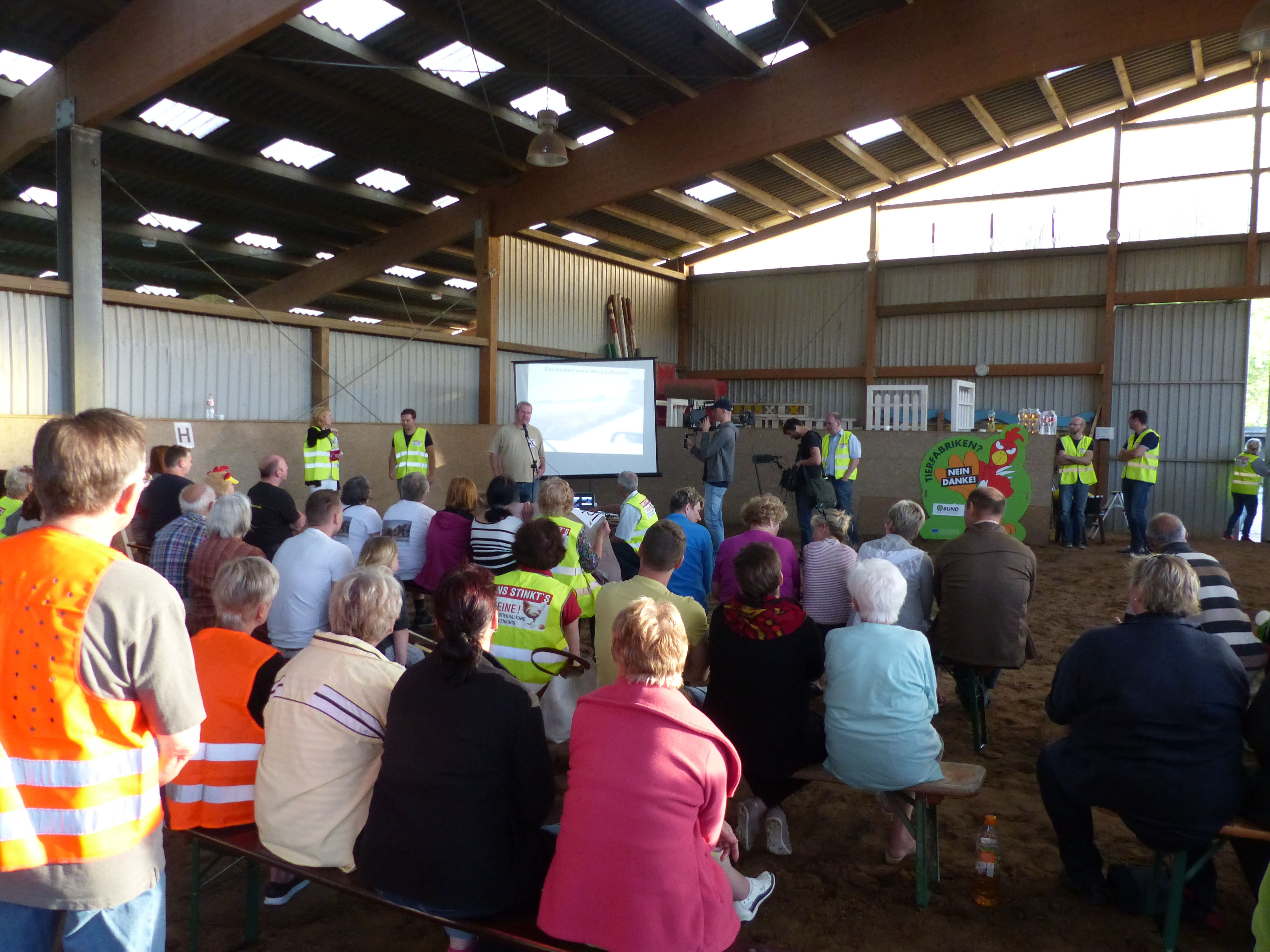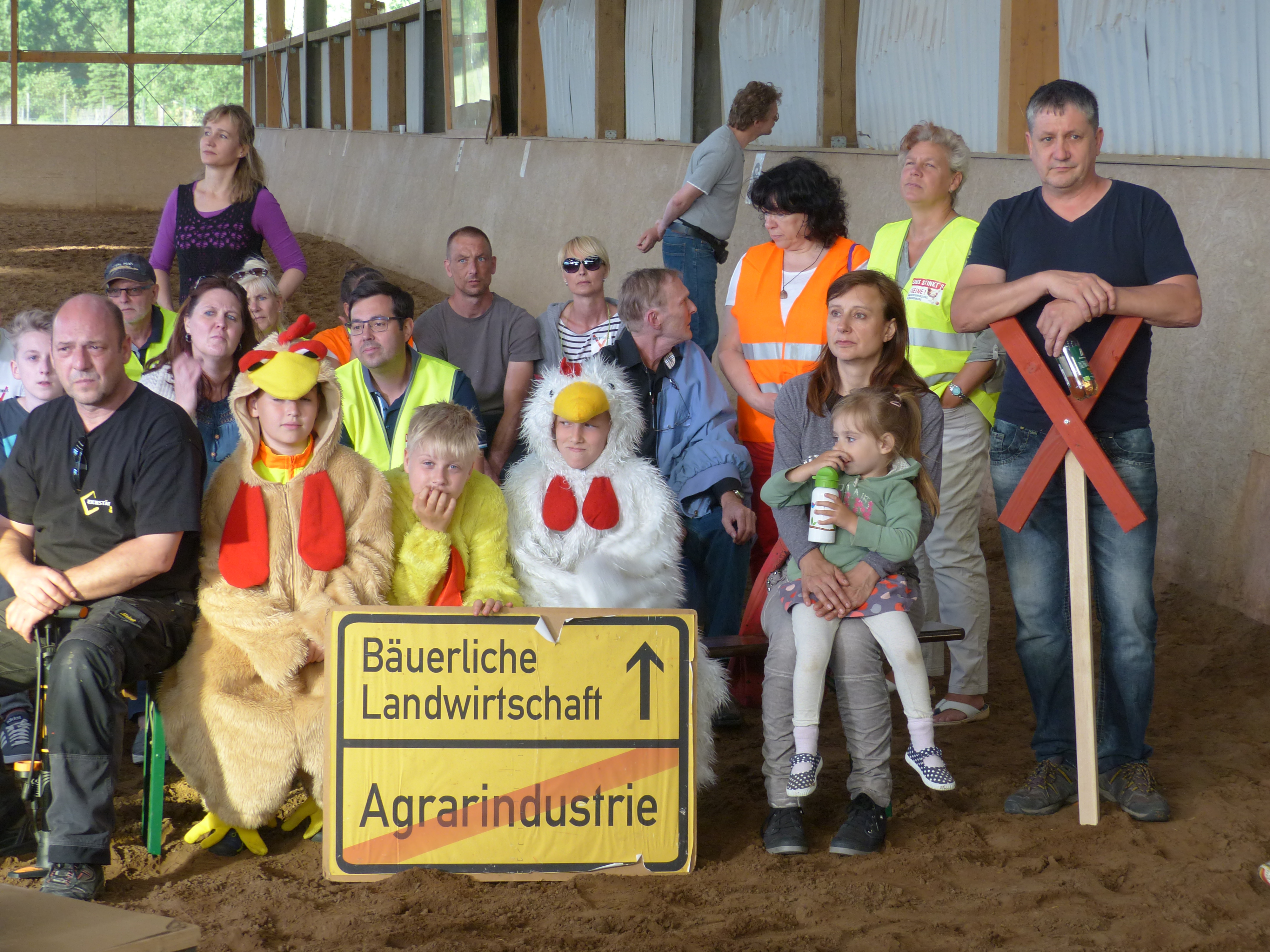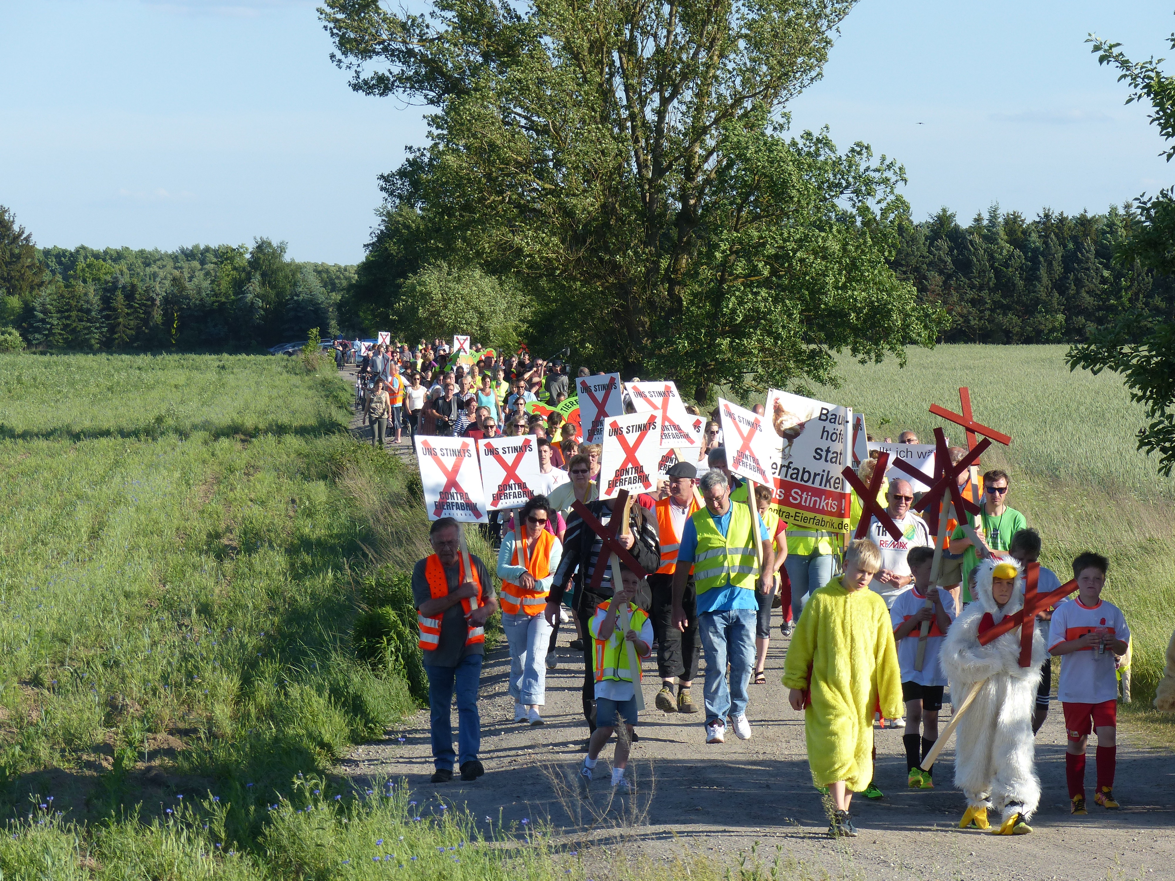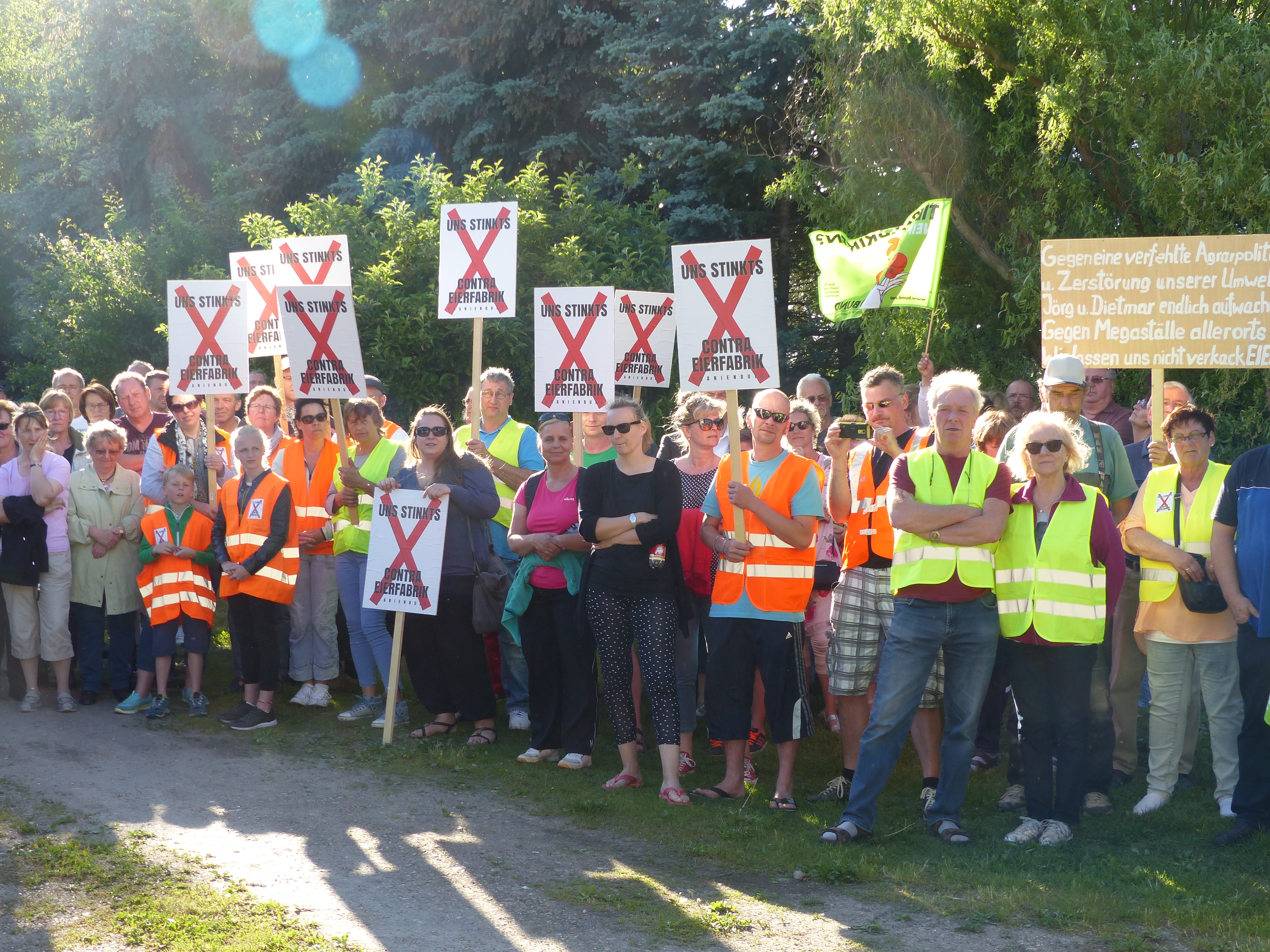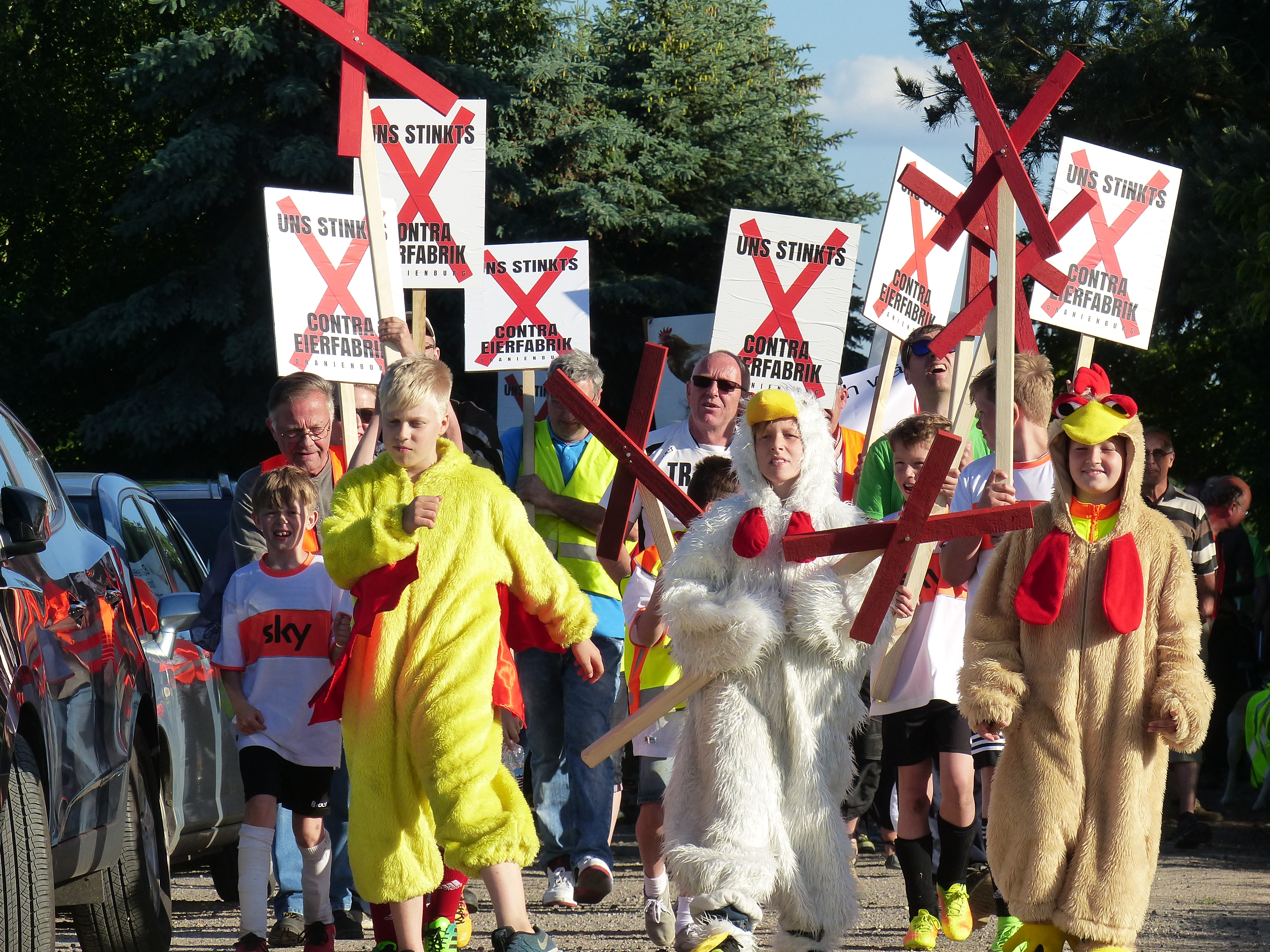 | Ben Becker gibt BenefizlesungVeröffentlicht am 06.06.2017 Der Schauspieler und Sänger Ben Becker gibt am 2. Juli um 18 Uhr unter dem Titel "Gedichte und Geschichten" eine Benefizlesung in der Orangerie des Schlosses Oranienburg. Er unterstützt damit die Arbeit der Bürgerinitiative "Contra Eierfabrik", die seit einem Jahr gegen die Errichtung von Legehennenanlagen in Wensickendorf und Zehlendorf kämpft. Die Einnahmen sollen der Arbeit der Bürgerinitiative zugute kommen. Karten sind für 25 Euro bei allen Vorverkaufsstellen in Oranienburg und im Onlineportal reservix.de erhältlich 300 Menschen beteiligen sich an KundgebungVeröffentlicht am 01.06.2017 Knapp 300 Menschen beteiligten sich am gestrigen frühen Abend in Zehlendorf an einer Demonstration gegen die Eierfabrik-Pläne von Investor Josef Vortallen. Die Kundgebung wurde innerhalb weniger Tage auf die Beine gestellt. Ein Anlass dafür war, dass die BI erneut ein Zeichen setzen wollte. Denn auch nachdem die Stadtverordneten Oranienburgs beschlossen haben, über einen Bebauungsplan die Ansiedlung von Tierhaltungsanlagen im gesamten Stadtgebiet zu steuern, bleibt Widerstand gegen derlei Pläne wichtig.Zum einen, weil das Genehmigungsverfahren für die Anlage in Zehlendorf bereits beim Landesumweltamt läuft. Hier ist in den nächsten Wochen mit der Veröffentlichung der Antragsunterlagen zu rechnen. Ab Veröffentlichungstermin haben Einwohner sechs Wochen Zeit, ihre persönlichen Einwendungen an das Landesumweltamt zu schicken. Einwendungen, die davor oder danach eingehen, werden vom Amt nicht berücksichtigt. Außerdem wollen wir weiter Flagge zeigen. Der Bebauungsplan schafft Klarheit , wo im Oranienburger Stadtgebiet künftig solche Anlagen angesiedelt werden können und unter welchen Voraussetzungen. Damit könnten nicht nur Zehlendorf und Wensickendorf als mögliche Standorte auserkoren werden, auch andere Ortsteile könnten in Frage kommen. Der BI ist es wichtig, dass in solch einem Fall nicht der eine Ortsteil gegen den anderen kämpft. Viel besser ist es nach unserer Ansicht, wenn man den Widerstand gegen Massentierhaltungsanlagen vereint. Die BI Contra Eierfabrik musste notgedrungen viel Zeit investieren, um sich mit der komplexen Materie vertraut zu machen. Von diesem Know how können auch andere Bürger profitieren, die sich gegen solche Anlagen wehren wollen! Hetzt aber war erst einmal ein Tag der Freude, denn mit so vielen Teilnehmern hatten die Organisatoren nicht gerechnet. Die Menschen kamen nicht nur aus Zehlendorf, Wensickendorf und Schmachtenhagen. Auch Lehnitzer Bürger und Einwohner weiterer Ortsteile beteiligten sich. Nach der Kudgebung im Garten der Familie Bartel ging es in einem Spaziergang zum Goldnebelhof. Dort fand in der Reithalle die routinemäßige Sitzung der BI statt. Übrigens: Mit dabei war auch ein Kamerateam der ARD. Sie bereiten einen Beitrag in der Reihe ARD exklusiv vor, der am 31. Juli ausgestrahlt werden soll und bei dem auch die BI eine Rolle spielen wird. Link zur Pressemitteilung vom 1. Juni 2017 Einige Bilder vermitteln einen guten Eindruck von der tollen Stimmung in diesen frühen Abendstunden. BI sagt Ja zum BebauungsplanVeröffentlicht am 30.05.2017 Die Bürgerinitiative "Contra Eierfabrik" hat die Entscheidung der Oranienburger Stadtverordneten für einen Bebauungsplan „Tierhaltungsanlagen“ sehr begrüßt. Damit ist ein wichtiger Schritt getan. Denn ein Bebauungsplan schafft Klarheit für alle Beteiligten. Es bleibt jedoch ein wichtiges Ziel für uns, Massentierhaltung ganz zu verhindern, denn sie bleibt eine unzeitgemäße Form von Tierindustrie. Unabhängig von den Plänen der Stadt Oranienburg bereite sich die Bürgerinitiative deshalb auf die Anhörung zu den Plänen des Investors Joseph Vortallen durch das Landesumweltamt vor. Uns kommt es darauf an, möglichst viele Bürgerinnen und Bürger für Einwendungen gegen die Pläne zu gewinnen. Nur wenn wir eine große Zahl fundierter Einwände gegen die Legehennenanlagen vorbringen, wird dem schon vorliegenden Antrag nicht zugestimmt. Deshlb suche die Bürgerinitiative schon heute Mitstreiter, die sich die Antragsunterlagen des Investors genau anschauen, sobald dies rechtlich sauber möglich ist. Wer dabei mithelfen möchte, kann sich per Mail melden unter info@contra-eierfabrik.de. Zur Pressemitteilung vom 29. Mai 2017 Schau mal, wir sind im Fernsehen!Veröffentlicht am 27.05.2017 Liebe Mitstreiterinnen und Mitstreiter, wenn es bei den jetzigen Plänen bleibt, bekommen wir am 31. Mai Besuch von der ARD. Die Fernsehleute wollen über unsere Bürgerinitiative in einer Sendung in der Reihe „ARD exklusiv“ berichten. Das ist für uns eine gute Sache, denn die Sensibilisierung der Öffentlichkeit ist für uns einer der wichtigsten Faktoren für den erfolgreichen Kampf gegen die Legehennenanlagen überhaupt. Alles, was wir bisher erreicht haben, basiert wesentlich auf dem öffentlichen Druck, den wir aufbauen konnten. Auch die Statements der politischen Parteien in Oranienburg dürften zu einem guten Teil auf unsere Präsenz in den Medien zurückzuführen sein. Deshalb wäre es eine super Sache, wenn wir am 31. Mai dem Fernsehteam eine lebendige, bunte, meinungsstarke Bürgerinitiative präsentieren könnten. Unsere herzliche Bitte an alle: Kommt am 31. Mai um 18.30 Uhr zum Garten er Familie Bartel oder spätestens um 19 Uhr zum Goldnebelhof, traut Euch auch, Eure Meinung offen zu sagen, wenn die Journalisten Fragen stellen oder um ein kleines Interview vor der Kamera bitten. Wir selber haben es in der Hand, auch bundesweit auf unser Anliegen aufmerksam zu machen! Hauptausschuss beschließt Empfehlung an StadtverordneteVeröffentlicht am 16.05.2017 Gestern hat der Hauptausschuss der Stadtverordnetenversammlung Oranienburg empfohlen, einen einfachen Bebauungsplan für das Stadtgebiet Oranienburgs aufstellen zu lassen. Damit solle die Ansiedlung von landwirtschaftlichen und gewerblichen Massentierhaltungsanlagen im Stadtgebiet g